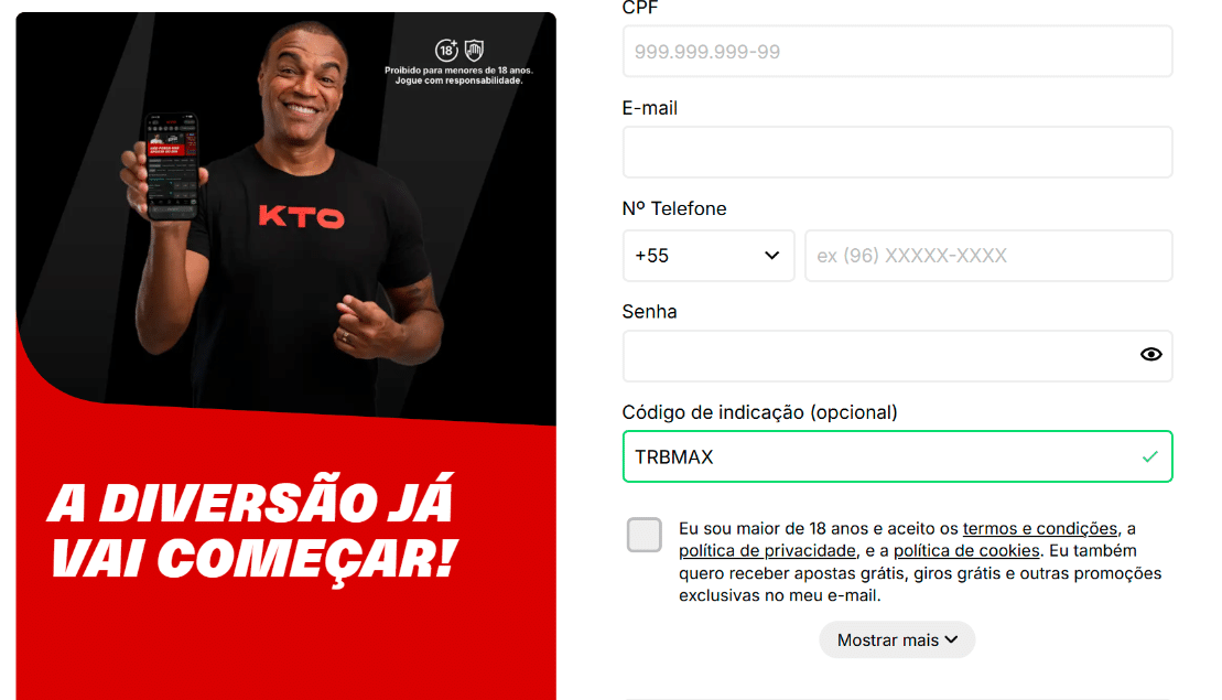 Se você vai abrir conta agora, insira o código TRBMAX no cadastro para liberar campanhas exclusivas da KTO. E lembre-se: aposte com responsabilidade – defina limites e jogue apenas por diversão. 🎯