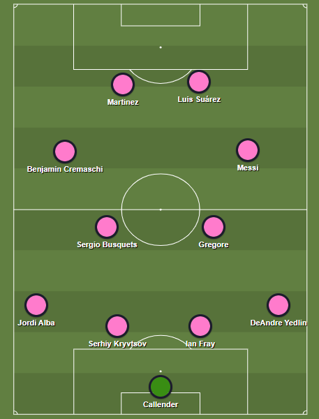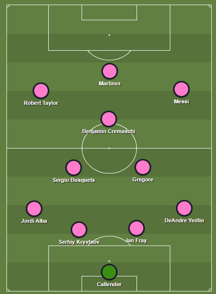Jordi Alba deve ganhar a posição na lateral esquerda, enquanto Busquets assume o comando defensivo do meio campo, ao lado de Gregore, ex-Bahia, capitão do time. Messi, por sua vez, assume o comando ofensivo do time, jogando mais aberto pela direita, enquanto flutua por todos os lados do campo. Como parceiro de ataque, Messi terá o venezuelado Martínez, artilheiro da equipe com seis gols na temporada.
