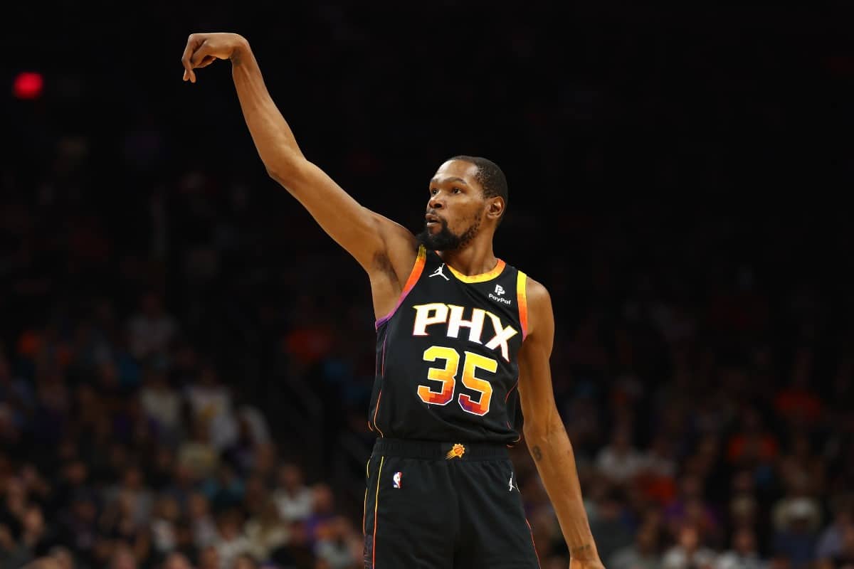 Aos 35 anos, Kevin Durant é uma das principais estrelas do Phoenix Suns. O ala-pivô lidera as estatísticas de média em pontos (31.3) e assistências (5.5) da franquia. Na atual temporada, Durant esteve em quadra em 16 jogos e marcou acima de 25 pontos em 15 oportunidades.